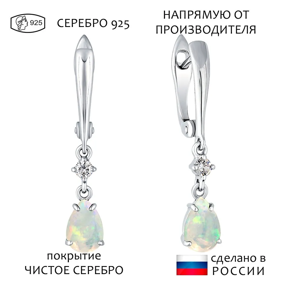 Серебряные серьги с натуральным опалом (Экстра) - коллекция Алсу (большая) / Чистое Серебро.