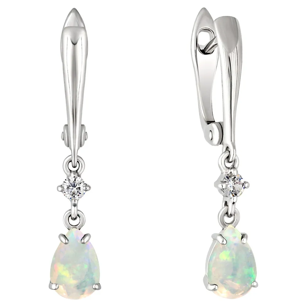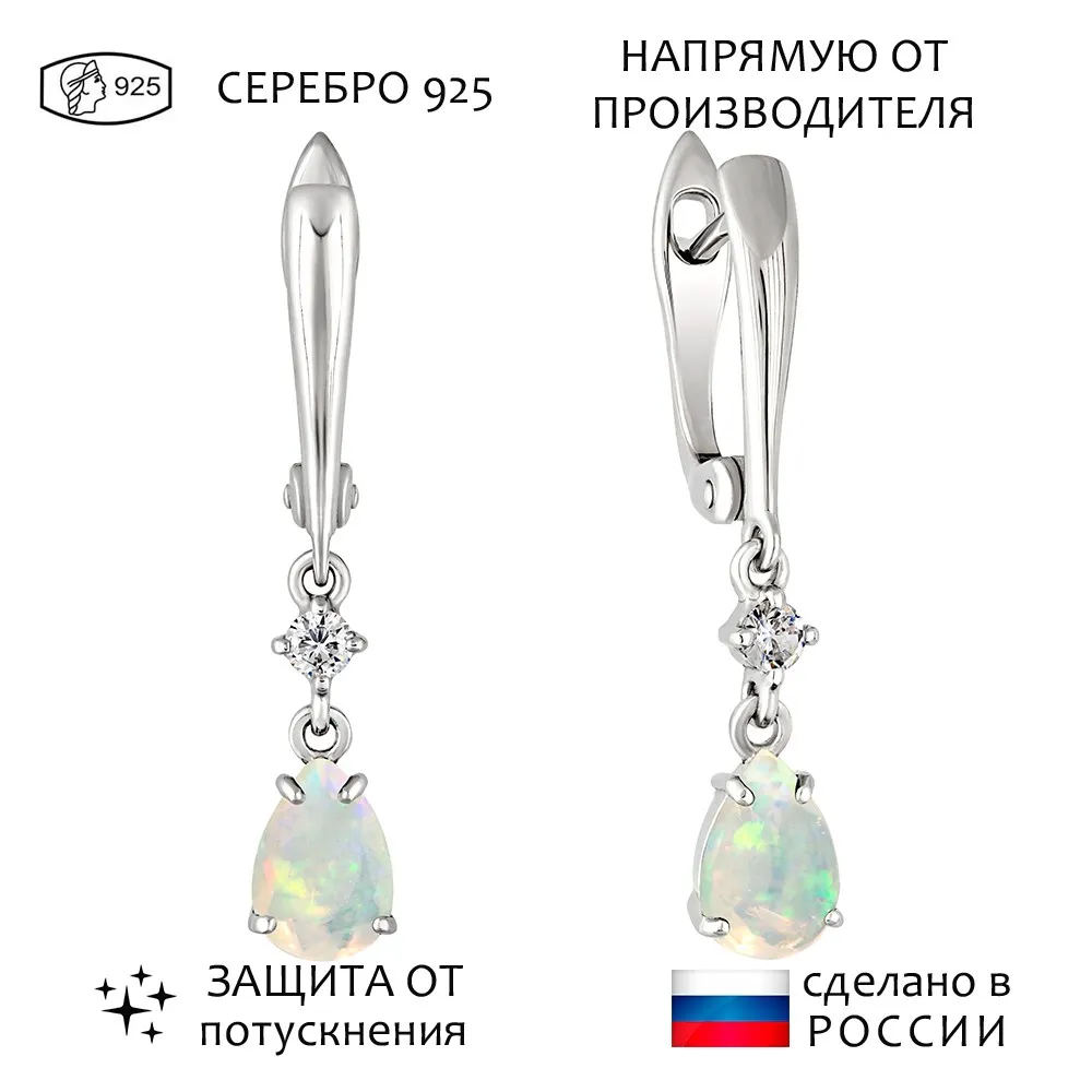 Серебряные серьги с натуральным опалом (Экстра) - коллекция Алсу (большая) / Без покрытия.
