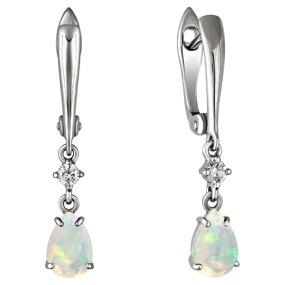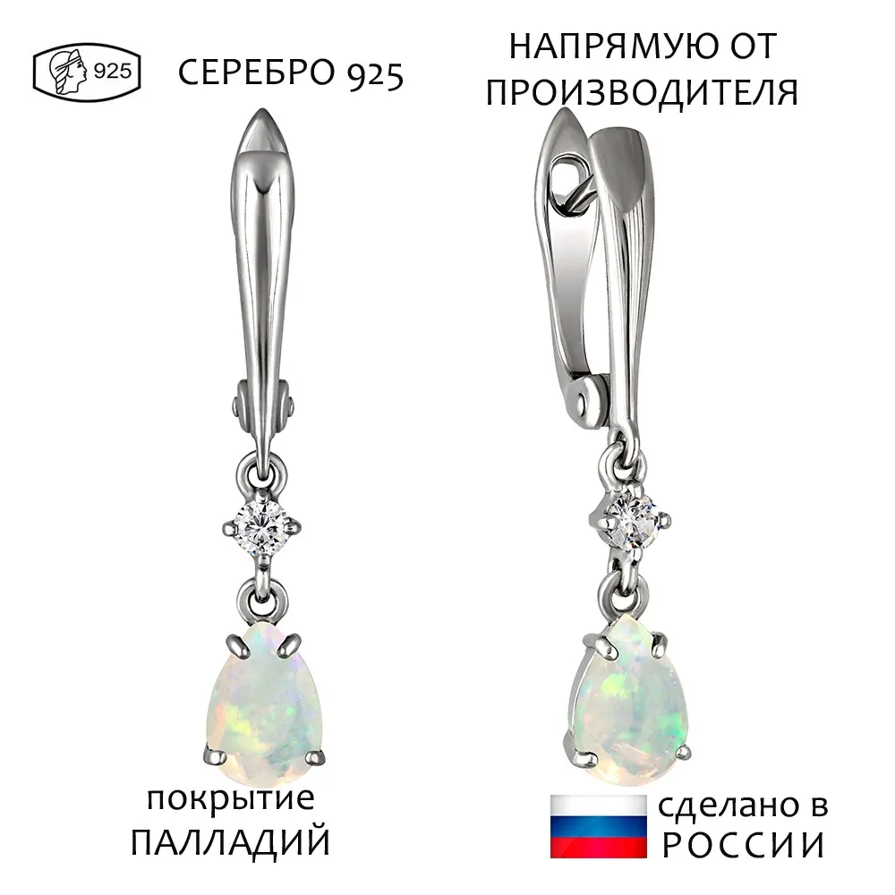 Серебряные серьги с натуральным опалом (Экстра) - коллекция Алсу (большая) / Палладий.