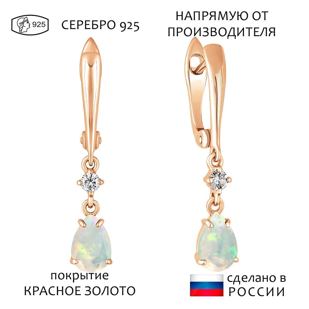 Серебряные серьги с натуральным опалом (Экстра) - коллекция Алсу (большая) / Красное золото.