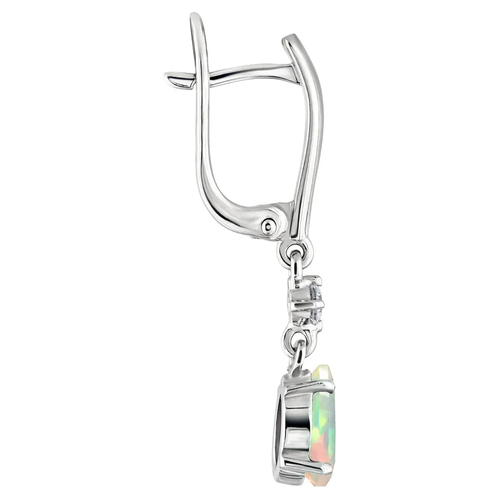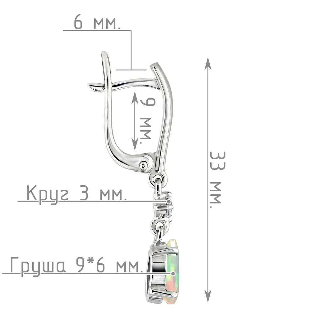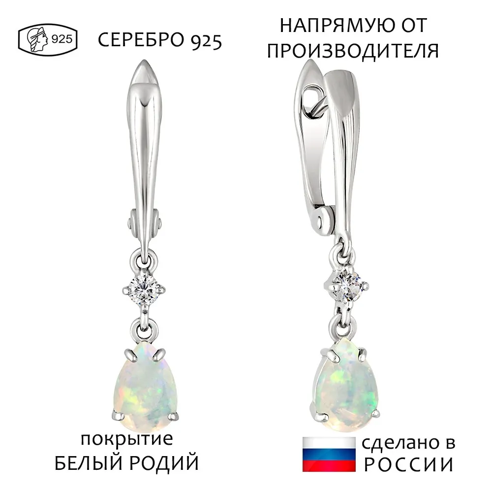 Серебряные серьги с натуральным опалом (Экстра) - коллекция Алсу (большая) / Белый Родий.