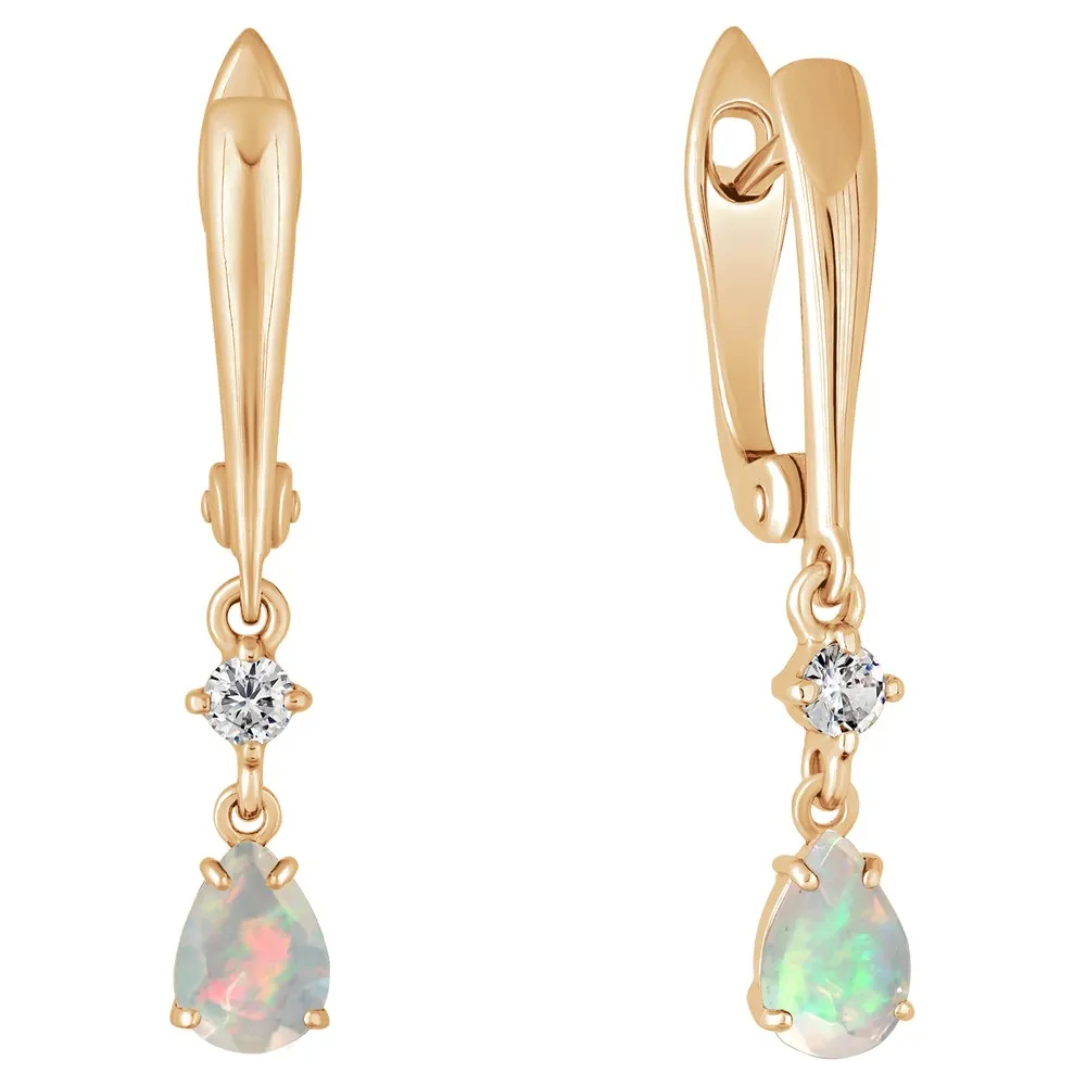 Серебряные серьги с натуральным опалом (Экстра) - коллекция Алсу (малая) / Розовое Золото.