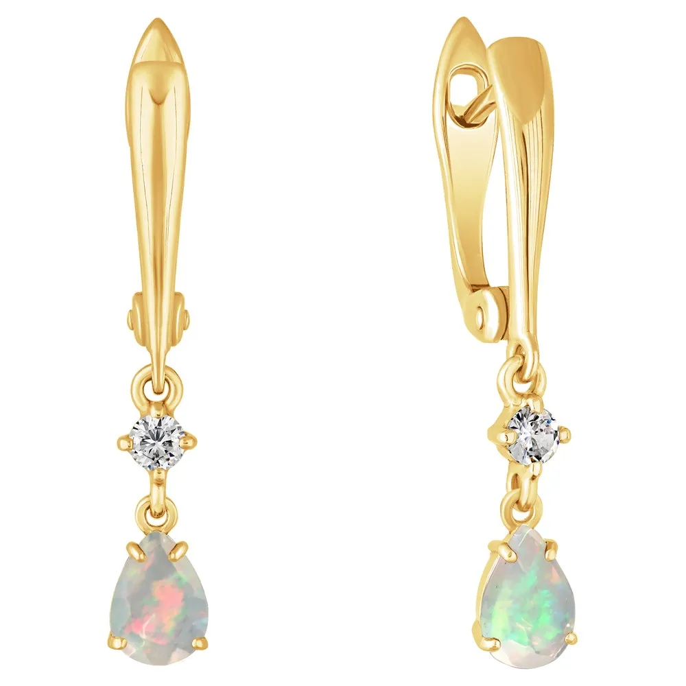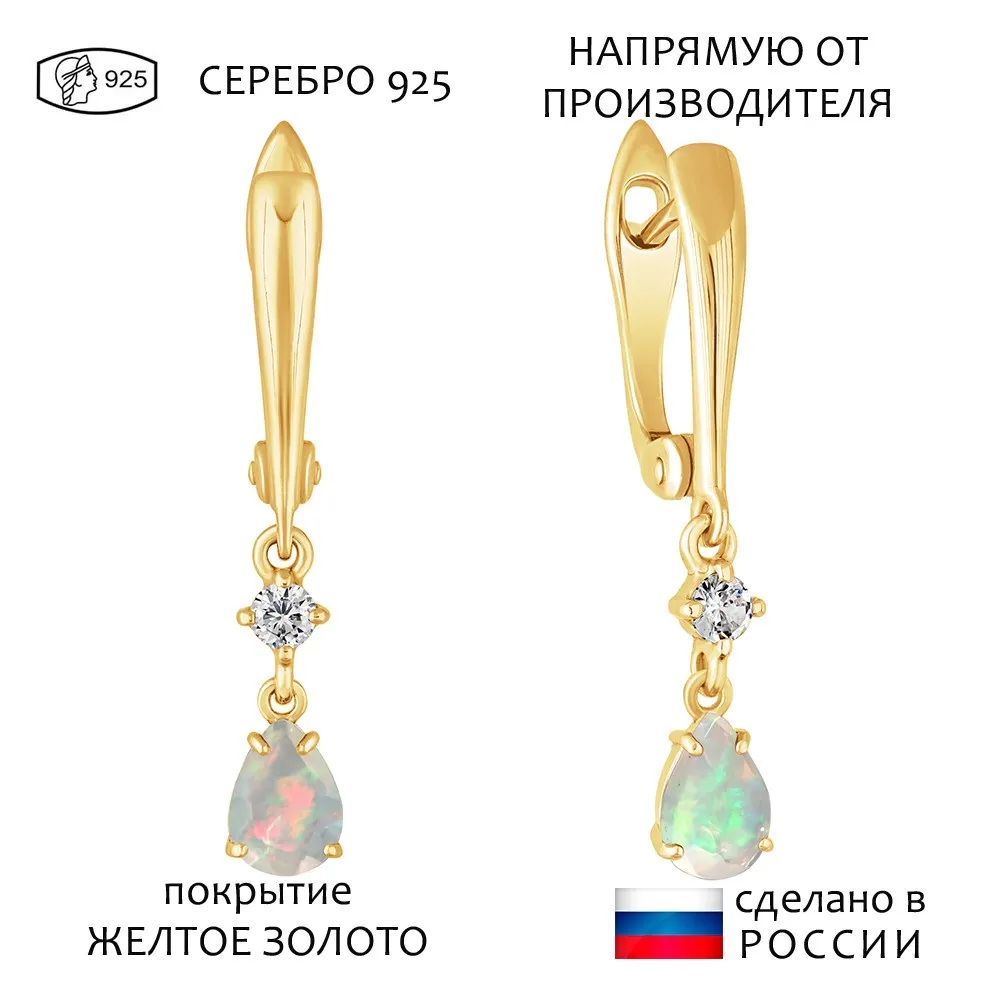 Серебряные серьги с натуральным опалом (Экстра) - коллекция Алсу (малая) / Желтое Золото.