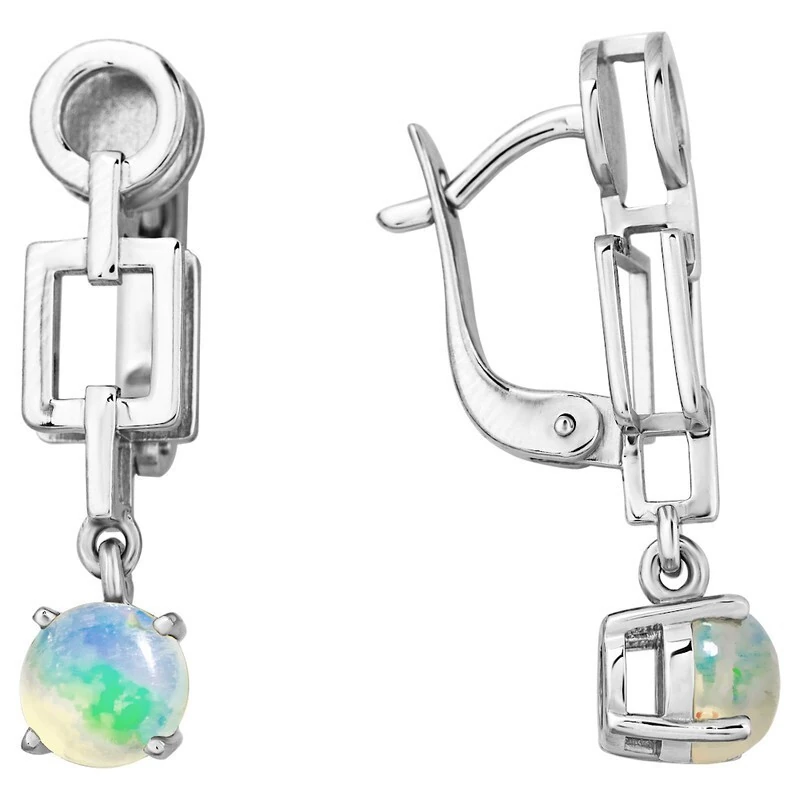 Серебряные серьги с натуральным опалом - коллекция Классик / Без покрытия