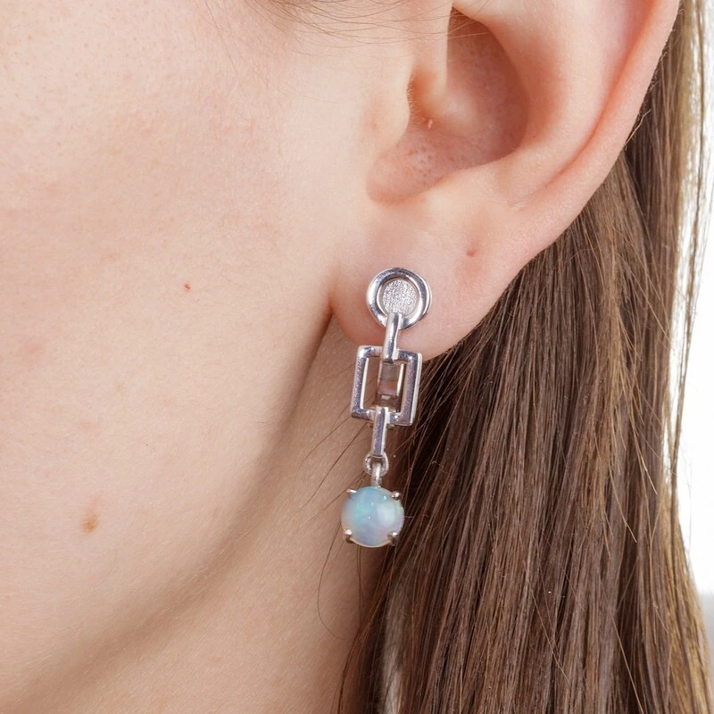 Серебряные серьги "Классик" с натуральным опалом. Средний вес изделия с камнями 6,27 гр. Месторождение(я) камней: Опал (Эфиопия). Опал (Натуральный) круг: 7*7 мм., средний вес 1,0 карат. Так же размер изделия Вы можете оценить на фото с миллиметровой бумагой. Все изделия собственного производства и имеют гарантию 12 месяцев. Арт. 6694.. Опал – это благородный камень, известный ещё с древности. Ему приписывали разнообразные магические свойства. Окраска опала многовариантна, выделяют более ста типов. Он помогал справиться с порчей и сглазом, защищал от негативной энергетики, способствовал излечению мигреней. Как талисман для ребенка, становился защитником от дурных сил и заболеваний.