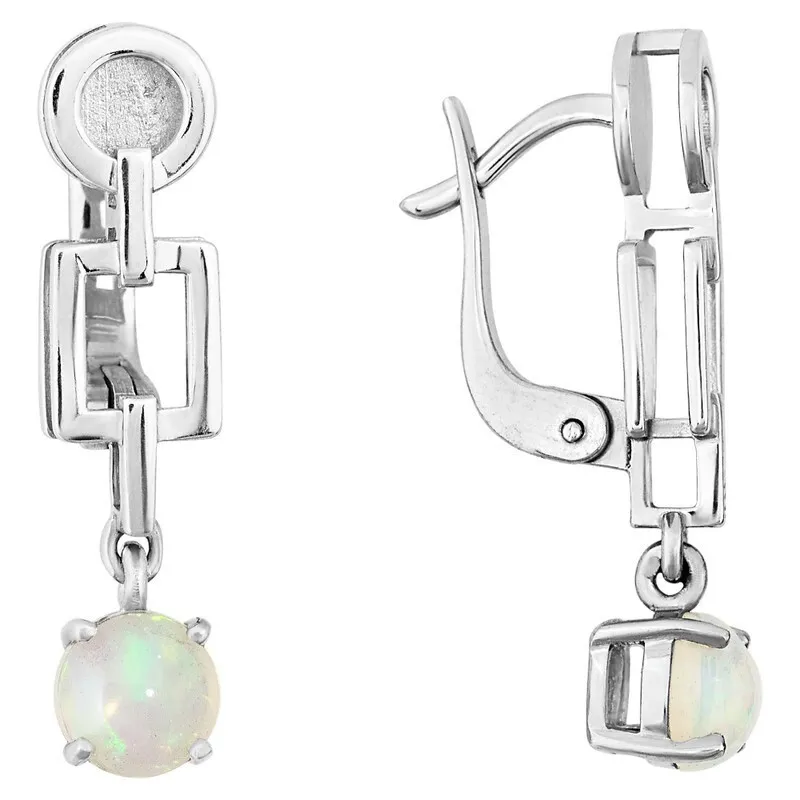Серебряные серьги "Классик" с натуральным опалом. Средний вес изделия с камнями 6,27 гр. Месторождение(я) камней: Опал (Эфиопия). Опал (Натуральный) круг: 7*7 мм., средний вес 1,0 карат. Так же размер изделия Вы можете оценить на фото с миллиметровой бумагой. Все изделия собственного производства и имеют гарантию 12 месяцев. Арт. 6694.. Опал – это благородный камень, известный ещё с древности. Ему приписывали разнообразные магические свойства. Окраска опала многовариантна, выделяют более ста типов. Он помогал справиться с порчей и сглазом, защищал от негативной энергетики, способствовал излечению мигреней. Как талисман для ребенка, становился защитником от дурных сил и заболеваний.