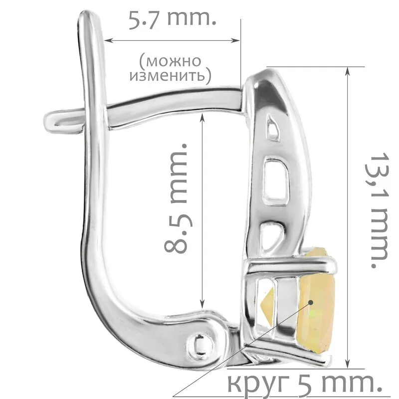 Серебряные серьги с натуральным опалом (Экстра) - коллекция Мона. Средний вес изделия с камнем составляет 2.48 гр. Месторождение(я): Опал (Эфиопия). Опал (Натуральный) круг 5 мм., средний вес: 0.34 карат. Все изделия собственного производства. Гарантия 12 месяцев.Арт. 7725. Опал – это благородный камень, известный ещё с древности. Ему приписывали разнообразные магические свойства. Окраска опала многовариантна, выделяют более ста типов. Он помогал справиться с порчей и сглазом, защищал от негативной энергетики, способствовал излечению мигреней. Как талисман для ребенка, становился защитником от дурных сил и заболеваний.