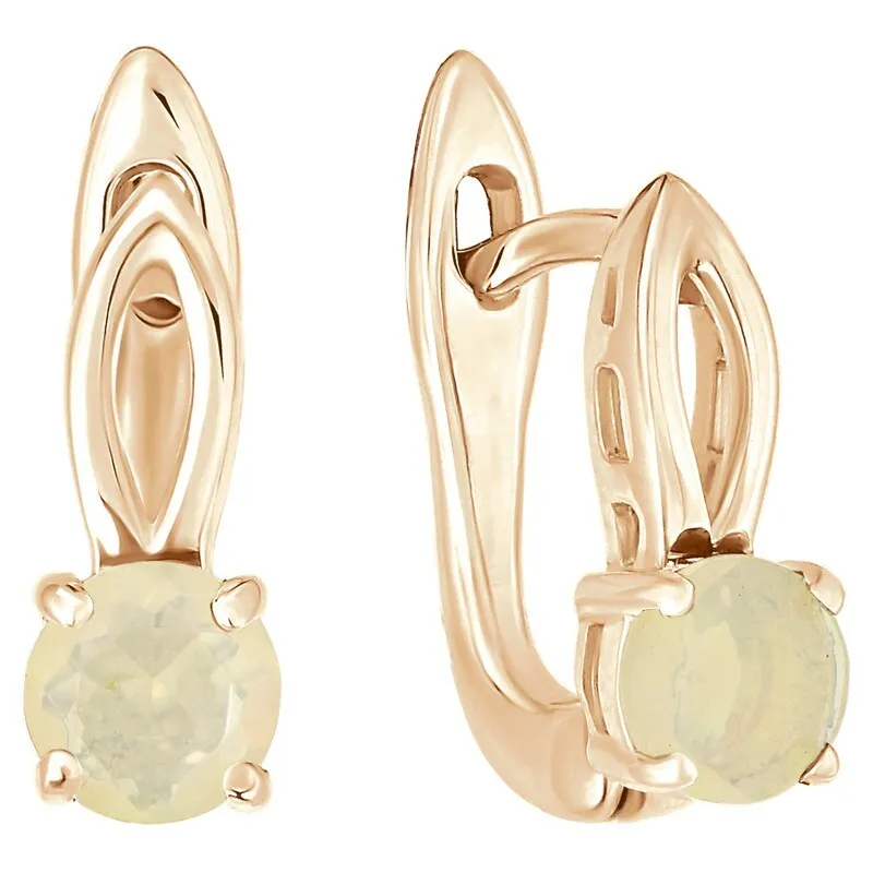 Серебряные серьги с натуральным опалом (1 класс) - коллекция Мона. Серебряные серьги 925 пробы с покрытием розовое золото. Цвет покрытия соответствует швейцарскому цветовому стандарту NIHS -4N и цвету розового золота 585 в России. На последней фотографии мы разместили сравнительную фотографию 3 цвета золотого покрытия. Помимо предания золотого цвета Вашему изделию, тонкий слой золота защищает от окисления. Для более стойкого эффекта золочения и долговечности покрытия мы дополнительно наносим подслой палладия (Pd). Средний вес изделия с камнем составляет 2.48 гр. Месторождение(я): Опал (Эфиопия). Опал (Натуральный) круг 5 мм., средний вес: 0.34 карат. Все изделия собственного производства. Гарантия 12 месяцев.Арт. 7726. Опал – это благородный камень, известный ещё с древности. Ему приписывали разнообразные магические свойства. Окраска опала многовариантна, выделяют более ста типов. Он помогал справиться с порчей и сглазом, защищал от негативной энергетики, способствовал излечению мигреней. Как талисман для ребенка, становился защитником от дурных сил и заболеваний.