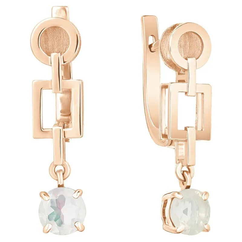 Серебряные серьги с натуральным опалом (1 класс) - коллекция Классик / покрытие Красное Золото