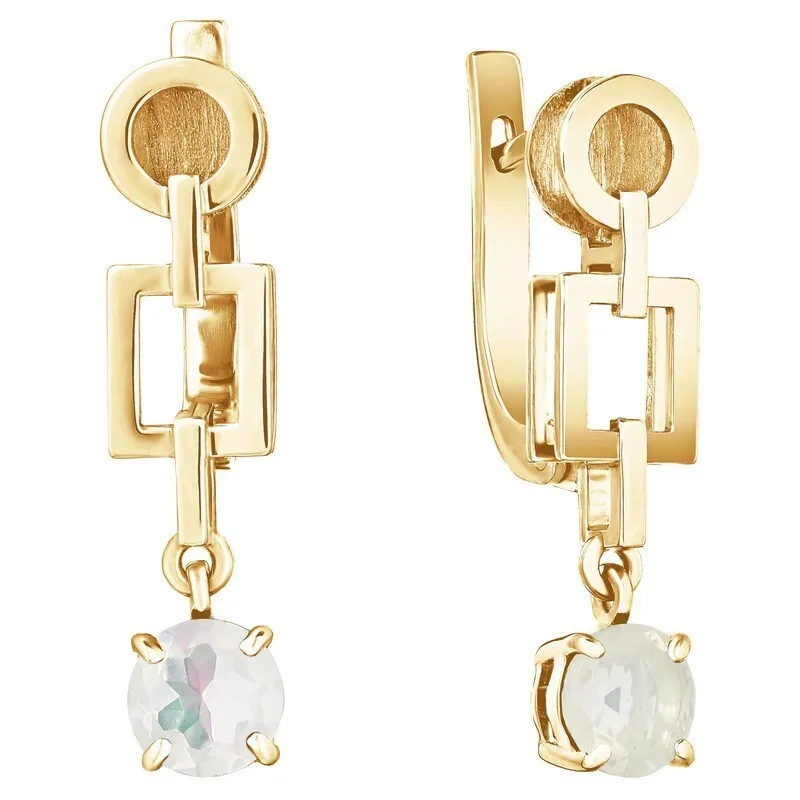 Серебряные серьги с натуральным опалом (1 класс) - коллекция Классик / покрытие Желтое Золото