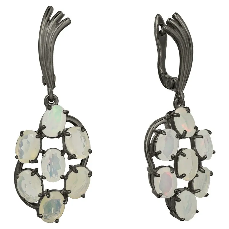 Серебряные серьги с натуральным опалом (1 и 2 класс) - коллекция Аэлита, покрытие Черный Родий.