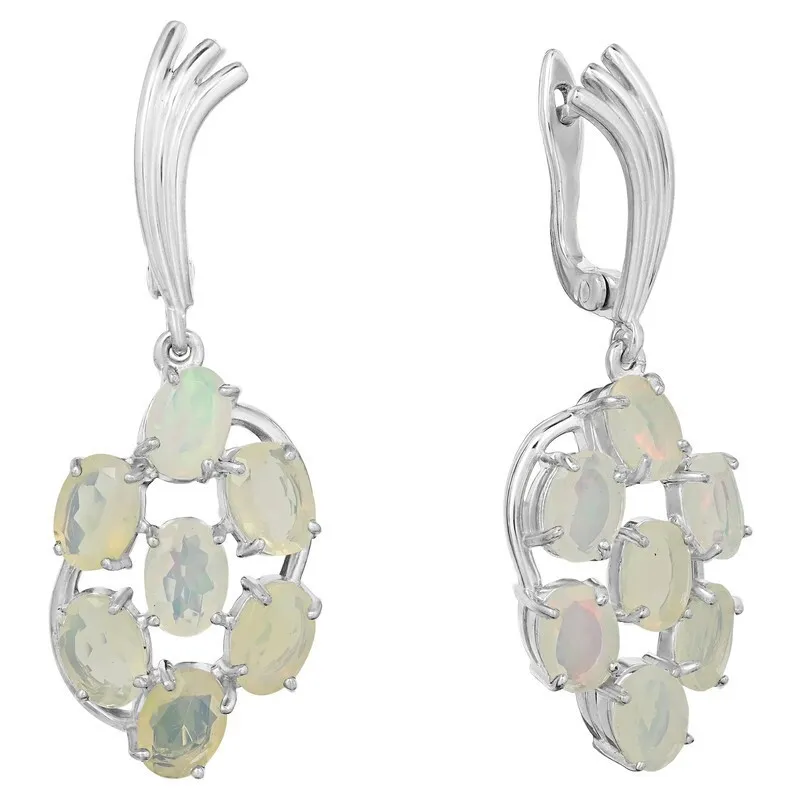 Серебряные серьги с натуральным опалом (1 и 2 класс) - коллекция Аэлита / покрытие Палладий
