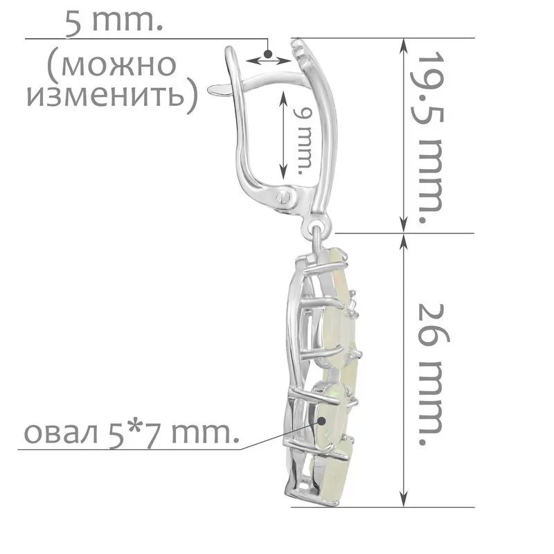 Серебряные серьги с натуральным опалом (1 и 2 класс) - коллекция Аэлита. Средний вес изделия с камнями 9.98 гр. Месторождение: Опал (Эфиопия). Опал (Натуральный) овал 5*7 мм., средний вес: 0.48 карат. Все изделия собственного производства. Гарантия 12 месяцев.Арт. 7830. Опал – это благородный камень, известный ещё с древности. Ему приписывали разнообразные магические свойства. Окраска опала многовариантна, выделяют более ста типов. Он помогал справиться с порчей и сглазом, защищал от негативной энергетики, способствовал излечению мигреней. Как талисман для ребенка, становился защитником от дурных сил и заболеваний.