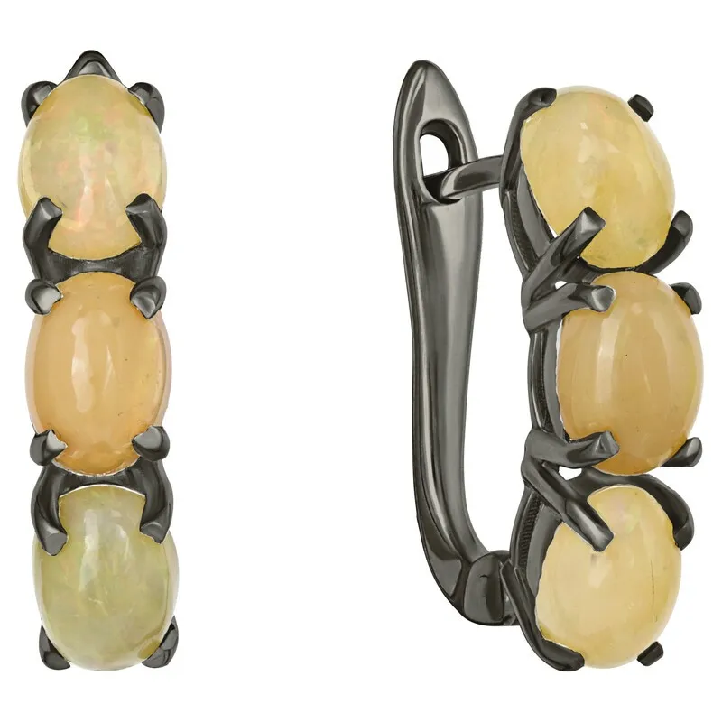 Серебряные серьги с натуральным опалом - коллекция Муза, покрытие Черный Родий.
