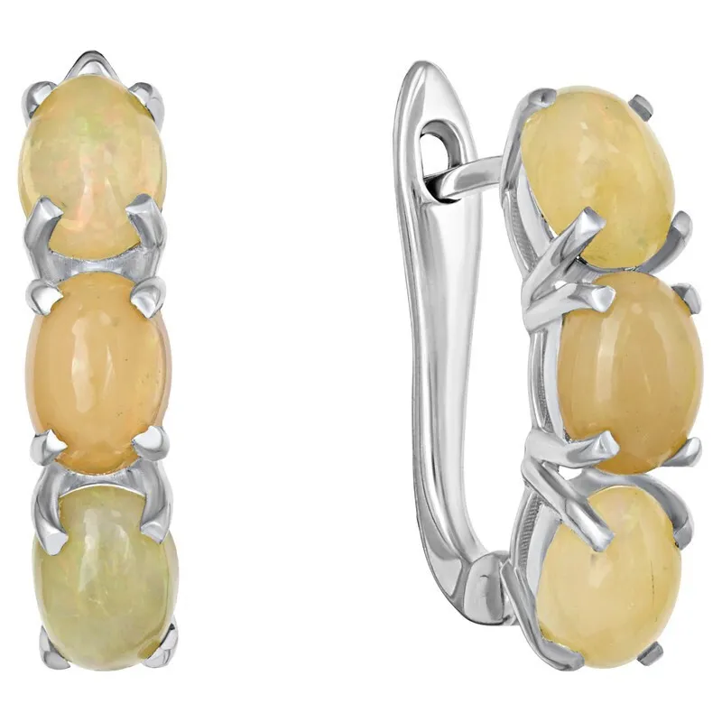Серебряные серьги с натуральным опалом - коллекция Муза / Без покрытия