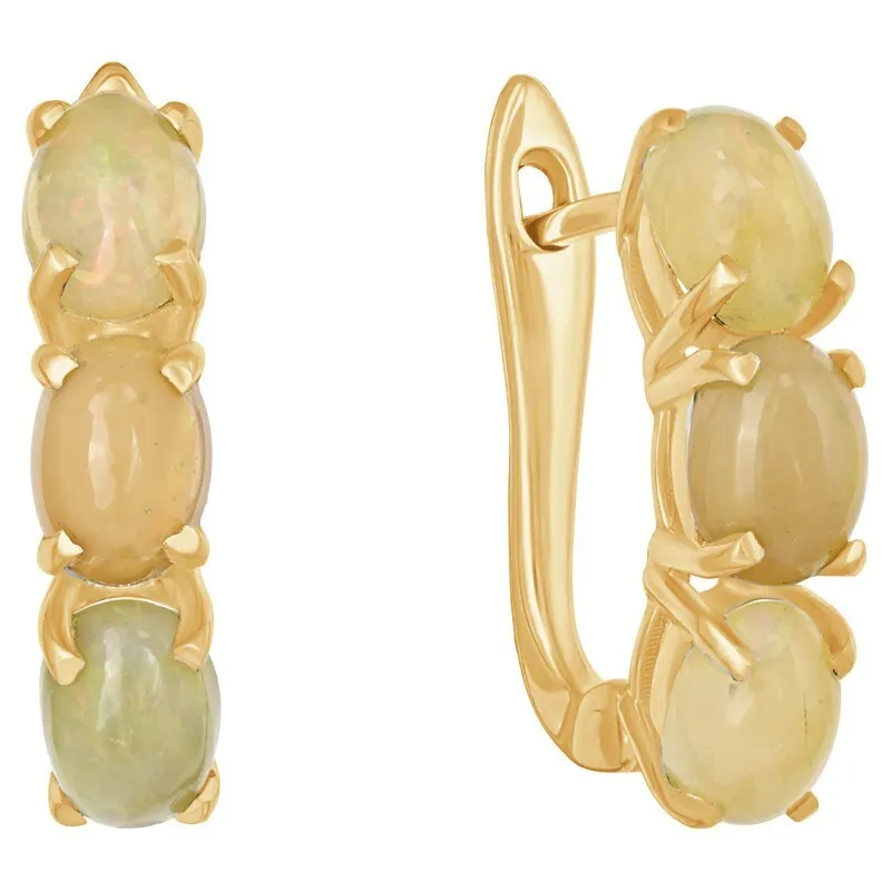 Серебряные серьги с натуральным опалом - коллекция Муза. Серебряные серьги 925 пробы с покрытием желтое золото. Цвет покрытия соответствует швейцарскому цветовому стандарту NIHS -FF24ct и цвету чистого золото 999.99. На последней фотографии мы разместили сравнительную фотографию 3 цвета золотого покрытия. Помимо предания золотого цвета Вашему изделию, тонкий слой золота защищает от окисления. Для более стойкого эффекта золочения и долговечности покрытия мы дополнительно наносим подслой палладия (Pd). Средний вес изделия с камнями 2.42 гр. Месторождение(я): Опал (Эфиопия) Опал (Натуральный) овал 5*7 мм., средний вес: 0,51 карат. Размер лицевой части: 5*21 мм. Все изделия собственного производства. Гарантия 12 месяцев.Арт. 7924