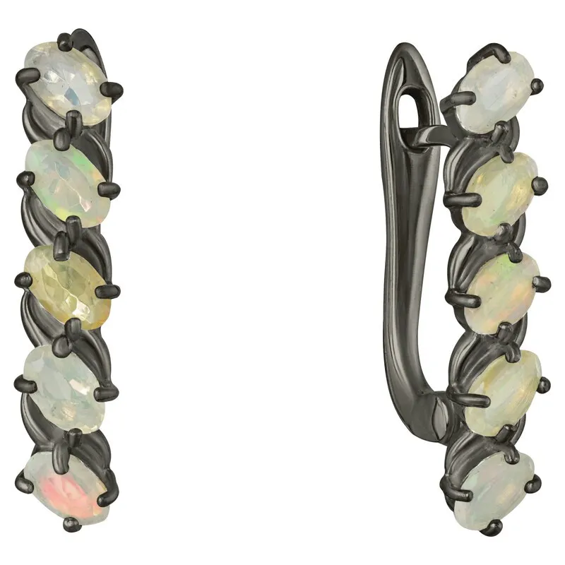 Серебряные серьги с натуральным опалом - коллекция Колосок, покрытие Черный Родий.