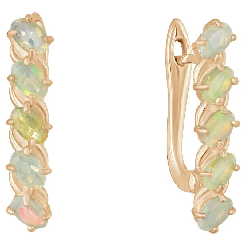 Серебряные серьги с натуральным опалом - коллекция Колосок. Серебряные серьги 925 пробы с покрытием розовое золото. Цвет покрытия соответствует швейцарскому цветовому стандарту NIHS -4N и цвету розового золота 585 в России. На последней фотографии мы разместили сравнительную фотографию 3 цвета золотого покрытия. Помимо предания золотого цвета Вашему изделию, тонкий слой золота защищает от окисления. Для более стойкого эффекта золочения и долговечности покрытия мы дополнительно наносим подслой палладия (Pd). Средний вес изделия с камнями 4.17 гр. Месторождение: Опал (Эфиопия). Опал (Натуральный) овал 3*5 мм., средний вес: 0.22 карат. Все изделия собственного производства. Арт. 7986. Опал – это благородный камень, известный ещё с древности. Ему приписывали разнообразные магические свойства. Окраска опала многовариантна, выделяют более ста типов. Он помогал справиться с порчей и сглазом, защищал от негативной энергетики, способствовал излечению мигреней. Как талисман для ребенка, становился защитником от дурных сил и заболеваний.