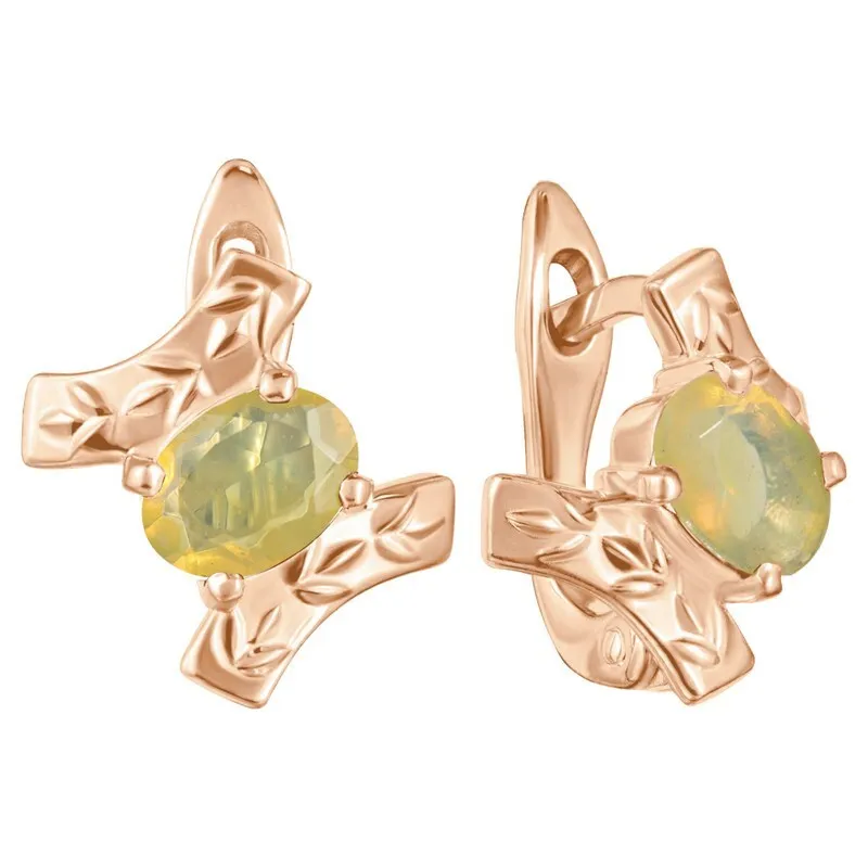 Серебряные серьги с натуральным опалом (2 класс) - коллекция Тея. Серебряные серьги 925 пробы с покрытием красное золото. Цвет покрытия соответствует швейцарскому цветовому стандарту NIHS -5N и цвету красного золота 585 в России. На последней фотографии мы разместили сравнительную фотографию 3 цвета золотого покрытия. Помимо предания золотого цвета Вашему изделию, тонкий слой золота защищает от окисления. Для более стойкого эффекта золочения и долговечности покрытия мы дополнительно наносим подслой палладия (Pd). Средний вес изделия с камнями 3.67 гр. Месторождение: Опал (Эфиопия) Опал (Натуральный) овал 5*7 мм., средний вес: 0.46 карат. Все изделия собственного производства. Гарантия 12 месяцев.Арт. 8136. Опал – это благородный камень, известный ещё с древности. Ему приписывали разнообразные магические свойства. Окраска опала многовариантна, выделяют более ста типов. Он помогал справиться с порчей и сглазом, защищал от негативной энергетики, способствовал излечению мигреней. Как талисман для ребенка, становился защитником от дурных сил и заболеваний.