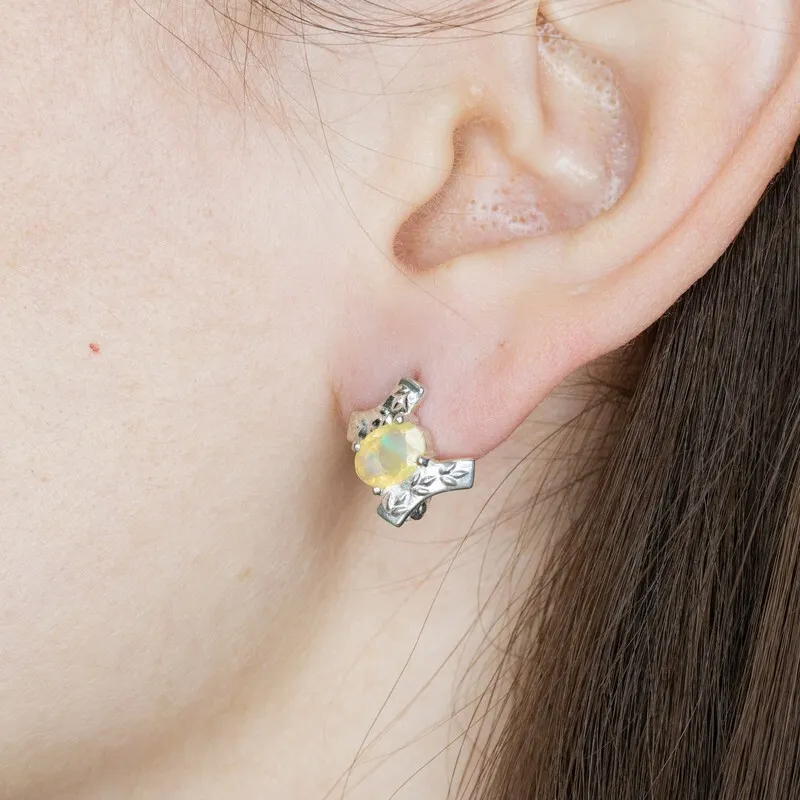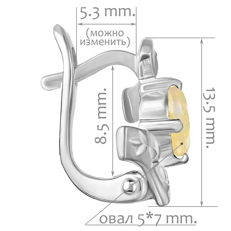 Серебряные серьги с натуральным опалом (2 класс) - коллекция Тея / покрытие Белый Родий