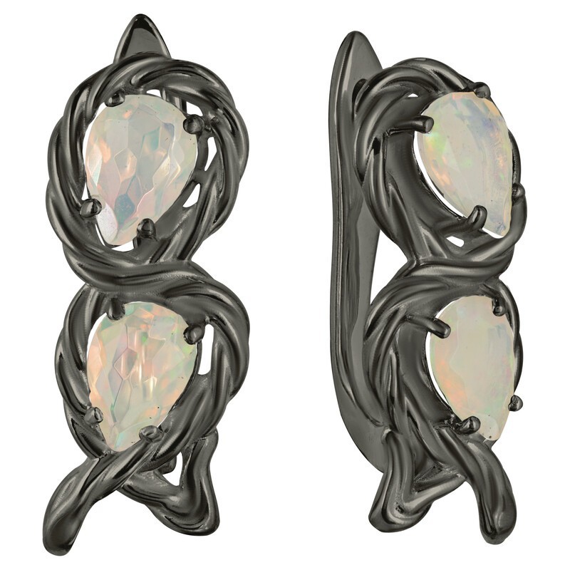 Серебряные серьги с натуральным опалом (1 класс) - коллекция Ривьера, покрытие Черный Родий.