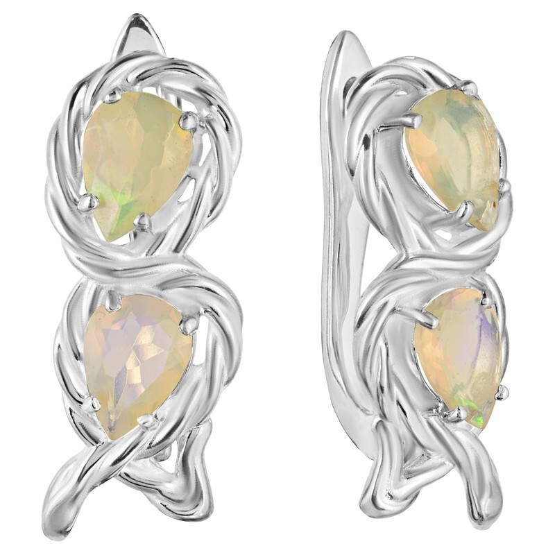 Серебряные серьги с натуральным опалом (1 класс) - коллекция Ривьера, покрытие Белый Родий.