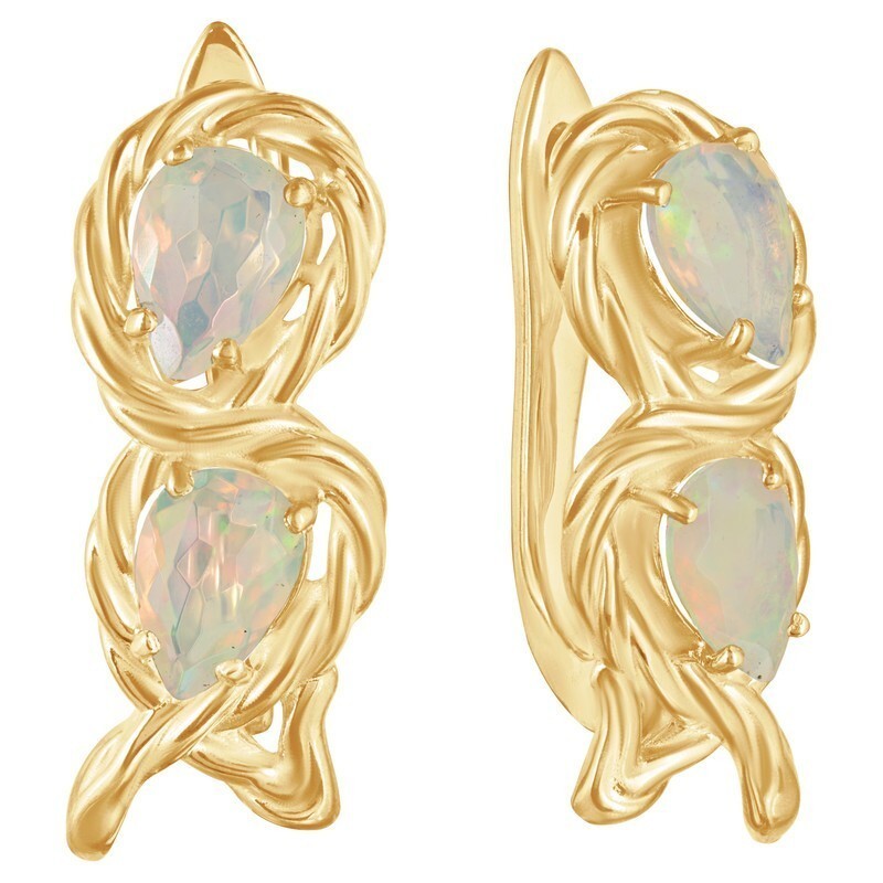 Серебряные серьги с натуральным опалом (1 класс) - коллекция Ривьера. Серебряные серьги 925 пробы с покрытием желтое золото. Цвет покрытия соответствует швейцарскому цветовому стандарту NIHS -FF24ct и цвету чистого золото 999.99. На последней фотографии мы разместили сравнительную фотографию 3 цвета золотого покрытия. Помимо предания золотого цвета Вашему изделию, тонкий слой золота защищает от окисления. Для более стойкого эффекта золочения и долговечности покрытия мы дополнительно наносим подслой палладия (Pd). Средний вес изделия с камнями 4.76 гр. Месторождение: Опал (Эфиопия) Опал (Натуральный) груша 5*7 мм., средний вес: 0.38 карат. Все изделия собственного производства. Гарантия 12 месяцев.Арт. 8157. Опал – это благородный камень, известный ещё с древности. Ему приписывали разнообразные магические свойства. Окраска опала многовариантна, выделяют более ста типов. Он помогал справиться с порчей и сглазом, защищал от негативной энергетики, способствовал излечению мигреней. Как талисман для ребенка, становился защитником от дурных сил и заболеваний.