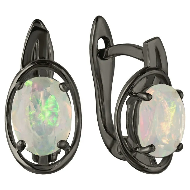 Серебряные серьги с натуральным опалом (Экстра) - коллекция Фрейя, покрытие Черный Родий.
