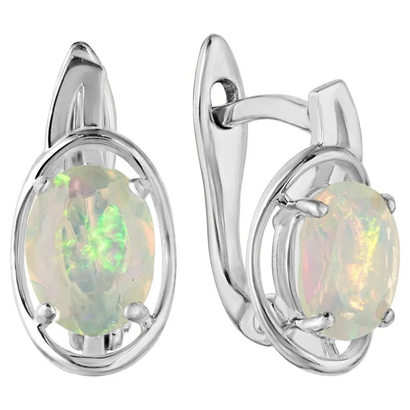 Серебряные серьги с натуральным опалом (Экстра) - коллекция Фрейя. Средний вес изделия с камнями 3.32 гр. Месторождение: Опал (Эфиопия). Опал (Натуральный) овал 6*8 мм., средний вес: 0.51 карат. Все изделия собственного производства. Гарантия 12 месяцев.Арт. 8200. Опал – это благородный камень, известный ещё с древности. Ему приписывали разнообразные магические свойства. Окраска опала многовариантна, выделяют более ста типов. Он помогал справиться с порчей и сглазом, защищал от негативной энергетики, способствовал излечению мигреней. Как талисман для ребенка, становился защитником от дурных сил и заболеваний.