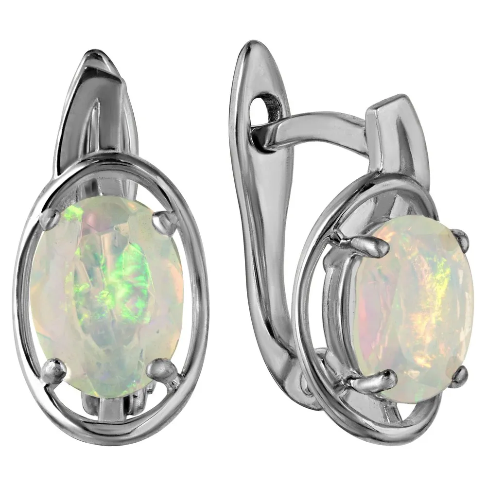 Серебряные серьги с натуральным опалом (Экстра) - коллекция Фрейя / покрытие Палладий