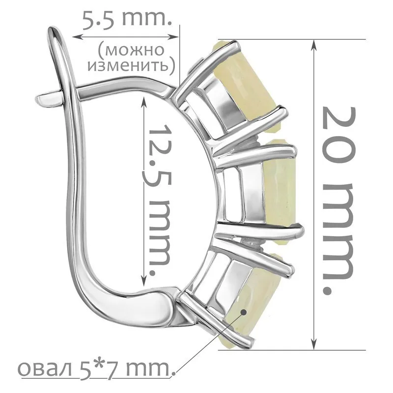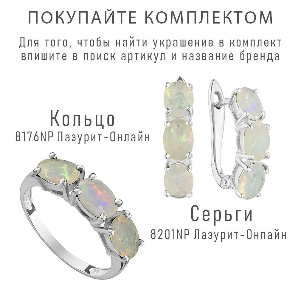 Серебряные серьги с натуральным опалом (1 класс) - коллекция Муза / Без покрытия