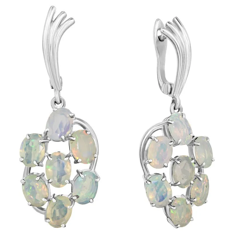 Серебряные серьги с натуральным опалом (1 класс) - коллекция Аэлита / покрытие Палладий