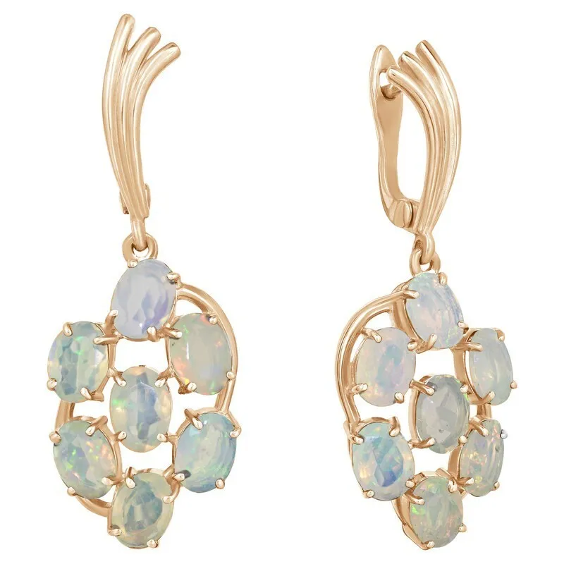 Серебряные серьги с натуральным опалом (1 класс) - коллекция Аэлита. Серебряные серьги 925 пробы с покрытием розовое золото. Цвет покрытия соответствует швейцарскому цветовому стандарту NIHS -4N и цвету розового золота 585 в России. На последней фотографии мы разместили сравнительную фотографию 3 цвета золотого покрытия. Помимо предания золотого цвета Вашему изделию, тонкий слой золота защищает от окисления. Для более стойкого эффекта золочения и долговечности покрытия мы дополнительно наносим подслой палладия (Pd). Средний вес изделия с камнями 9.98 гр. Месторождение: Опал (Эфиопия). Опал (Натуральный) овал 5*7 мм., средний вес: 0.46 карат. Все изделия собственного производства. Гарантия 12 месяцев.Арт. 8202. Опал – это благородный камень, известный ещё с древности. Ему приписывали разнообразные магические свойства. Окраска опала многовариантна, выделяют более ста типов. Он помогал справиться с порчей и сглазом, защищал от негативной энергетики, способствовал излечению мигреней. Как талисман для ребенка, становился защитником от дурных сил и заболеваний.