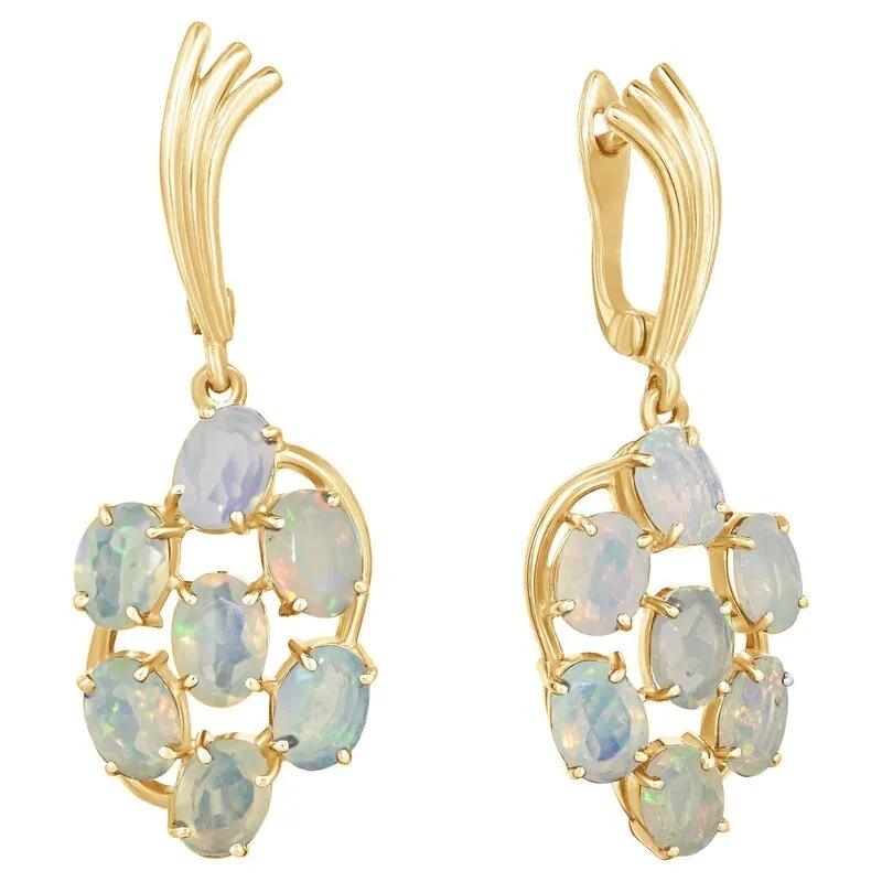 Серебряные серьги с натуральным опалом (1 класс) - коллекция Аэлита. Серебряные серьги 925 пробы с покрытием желтое золото. Цвет покрытия соответствует швейцарскому цветовому стандарту NIHS -FF24ct и цвету чистого золото 999.99. На последней фотографии мы разместили сравнительную фотографию 3 цвета золотого покрытия. Помимо предания золотого цвета Вашему изделию, тонкий слой золота защищает от окисления. Для более стойкого эффекта золочения и долговечности покрытия мы дополнительно наносим подслой палладия (Pd). Средний вес изделия с камнями 9.98 гр. Месторождение: Опал (Эфиопия). Опал (Натуральный) овал 5*7 мм., средний вес: 0.46 карат. Все изделия собственного производства. Гарантия 12 месяцев.Арт. 8202. Опал – это благородный камень, известный ещё с древности. Ему приписывали разнообразные магические свойства. Окраска опала многовариантна, выделяют более ста типов. Он помогал справиться с порчей и сглазом, защищал от негативной энергетики, способствовал излечению мигреней. Как талисман для ребенка, становился защитником от дурных сил и заболеваний.
