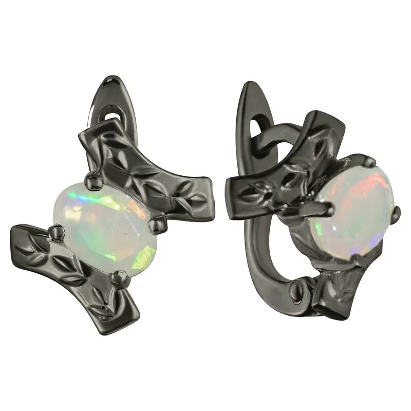 Серебряные серьги с натуральным опалом (1 класс) - коллекция Тея, покрытие Черный Родий.