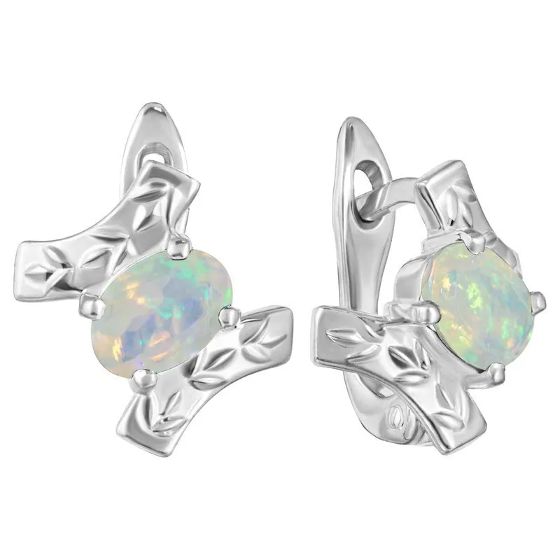 Серебряные серьги с натуральным опалом (1 класс) - коллекция Тея / Без покрытия