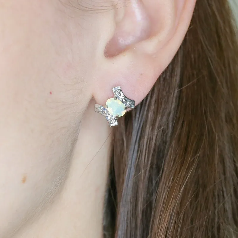 Серебряные серьги с натуральным опалом (1 класс) - коллекция Тея. Средний вес изделия с камнями 3.67 гр. Месторождение: Опал (Эфиопия). Опал (Натуральный) овал 5*7 мм., средний вес: 0.46 карат. Все изделия собственного производства. Гарантия 12 месяцев.Арт. 8203. Опал – это благородный камень, известный ещё с древности. Ему приписывали разнообразные магические свойства. Окраска опала многовариантна, выделяют более ста типов. Он помогал справиться с порчей и сглазом, защищал от негативной энергетики, способствовал излечению мигреней. Как талисман для ребенка, становился защитником от дурных сил и заболеваний.