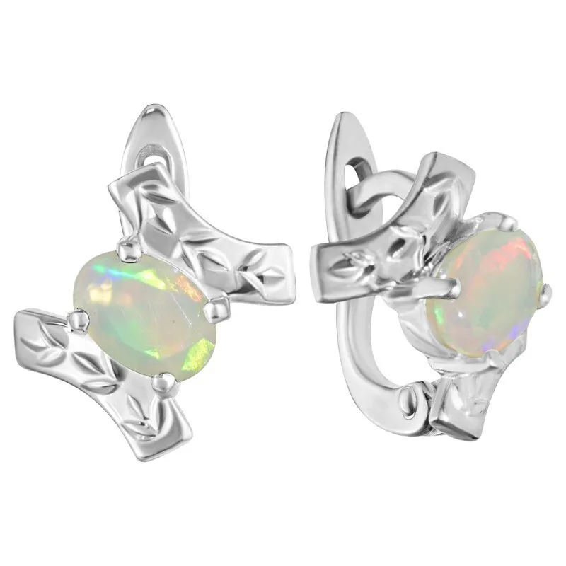 Серебряные серьги с натуральным опалом (Экстра) - коллекция Тея / покрытие Белый Родий