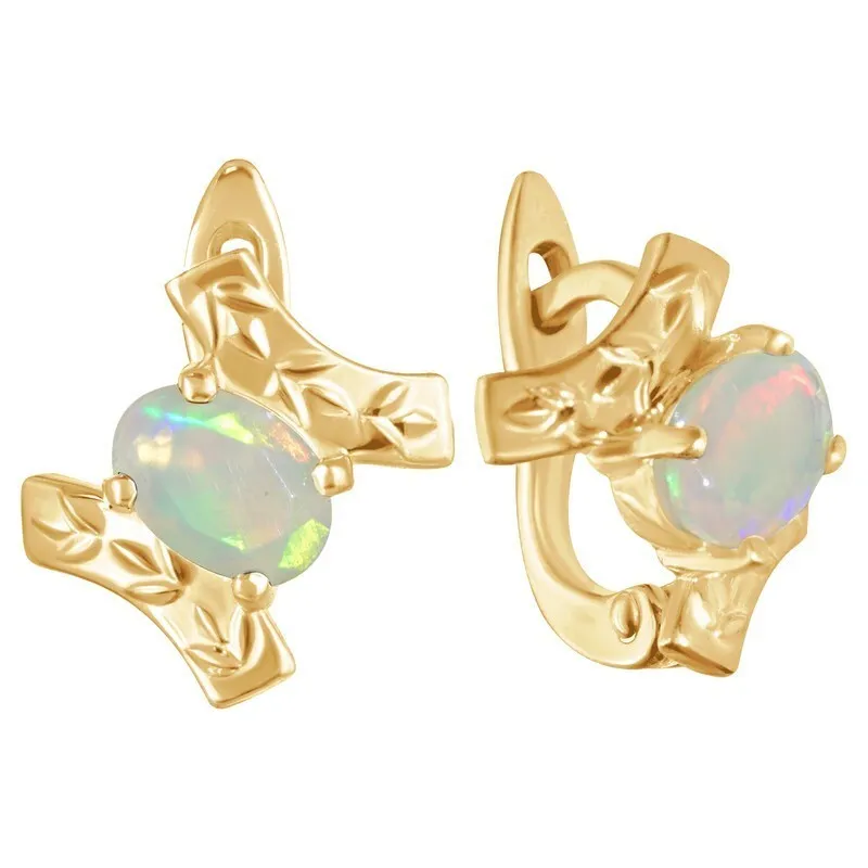 Серебряные серьги с натуральным опалом (Экстра) - коллекция Тея. Серебряные серьги 925 пробы с покрытием желтое золото. Цвет покрытия соответствует швейцарскому цветовому стандарту NIHS -FF24ct и цвету чистого золото 999.99. На последней фотографии мы разместили сравнительную фотографию 3 цвета золотого покрытия. Помимо предания золотого цвета Вашему изделию, тонкий слой золота защищает от окисления. Для более стойкого эффекта золочения и долговечности покрытия мы дополнительно наносим подслой палладия (Pd). Средний вес изделия с камнями 3.67 гр. Месторождение: Опал (Эфиопия). Опал (Натуральный) овал 5*7 мм., средний вес: 0.46 карат. Все изделия собственного производства. Гарантия 12 месяцев.Арт. 8204. Опал – это благородный камень, известный ещё с древности. Ему приписывали разнообразные магические свойства. Окраска опала многовариантна, выделяют более ста типов. Он помогал справиться с порчей и сглазом, защищал от негативной энергетики, способствовал излечению мигреней. Как талисман для ребенка, становился защитником от дурных сил и заболеваний.