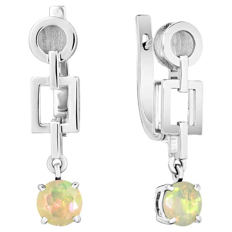 Серебряные серьги с натуральным опалом (Экстра) - коллекция Классик / покрытие Чистое Серебро