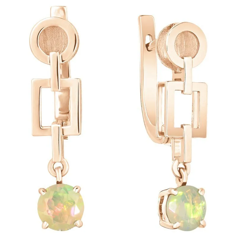 Серебряные серьги с натуральным опалом (Экстра) - коллекция Классик / покрытие Красное Золото