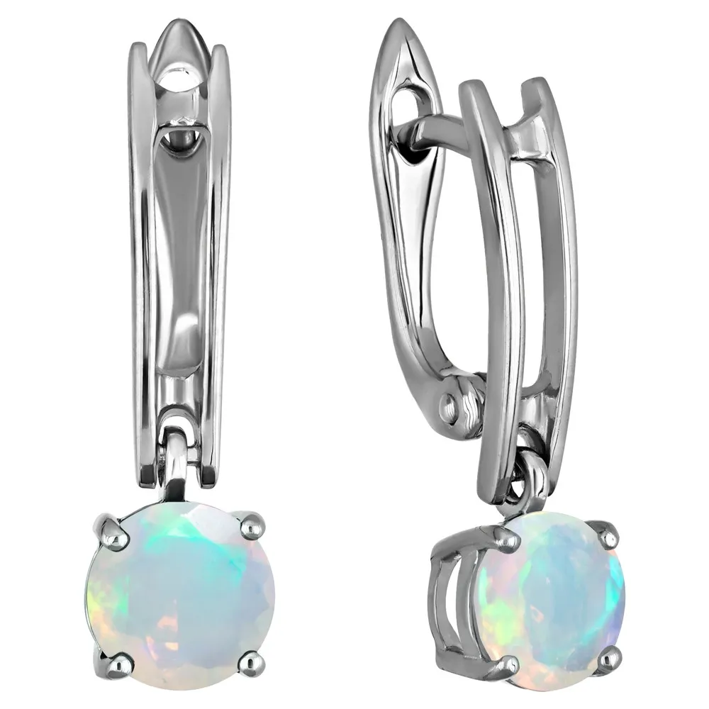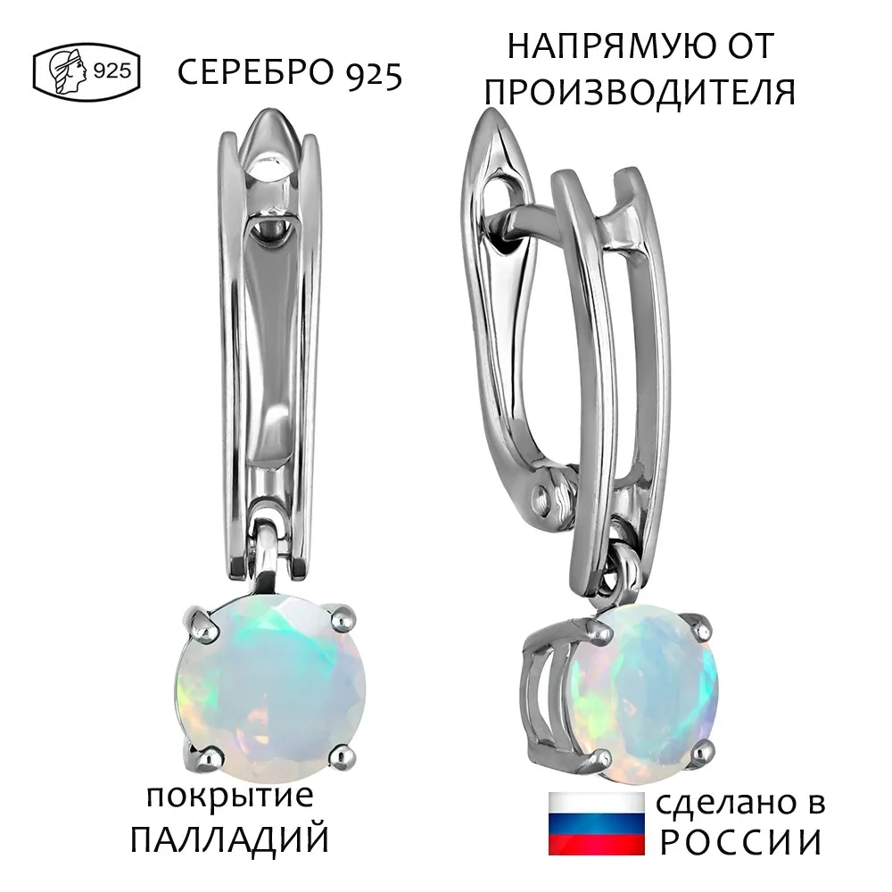Серебряные серьги с натуральным опалом (Экстра) - коллекция Классик (мини) / Палладий.