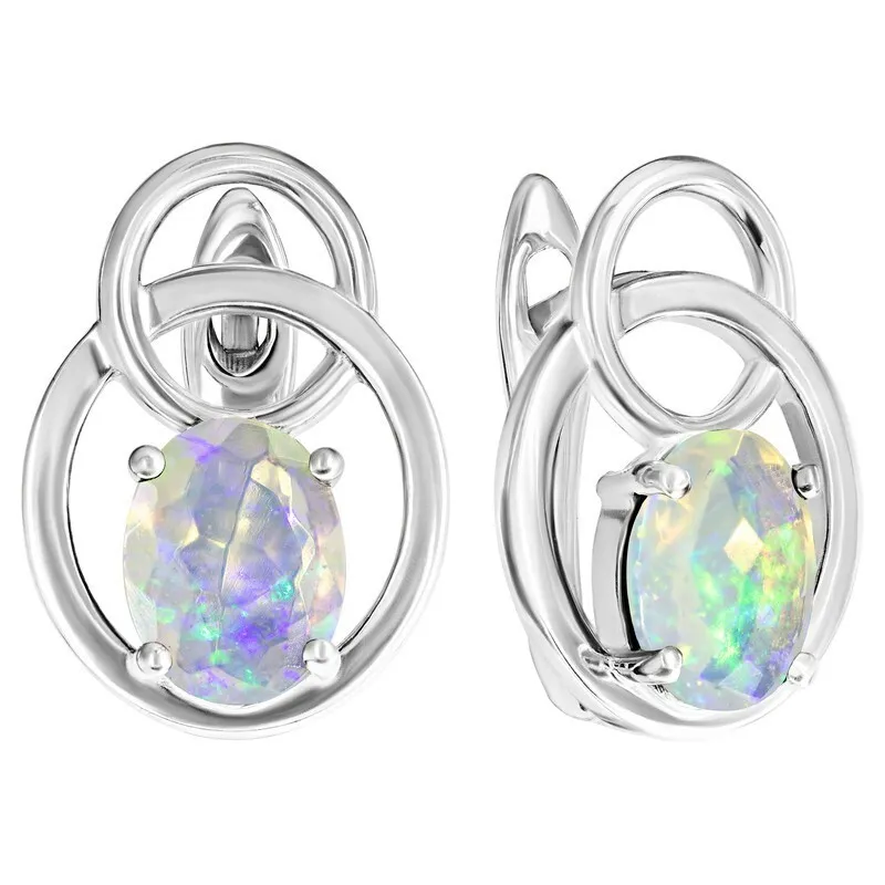 Серебряные серьги с натуральным опалом (1 класс) - коллекция Юнона / покрытие Чистое Серебро