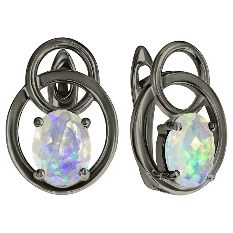 Серебряные серьги с натуральным опалом - коллекция Юнона, покрытие Черный Родий.