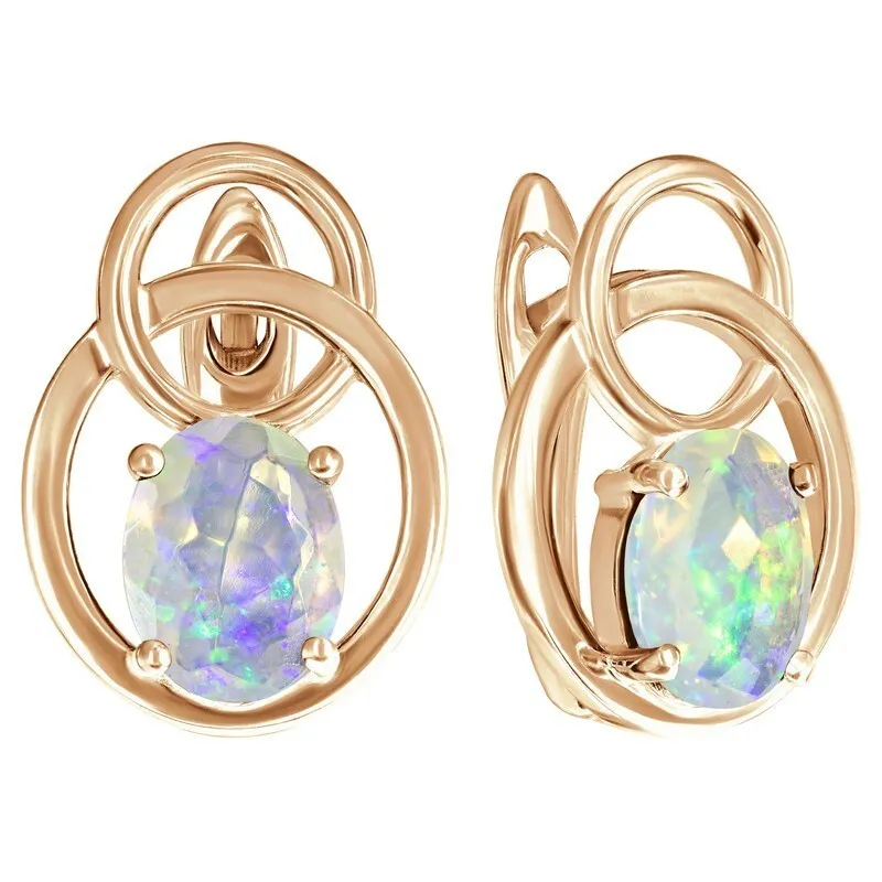Серебряные серьги с натуральным опалом - коллекция Юнона. Серебряные серьги 925 пробы с покрытием розовое золото. Цвет покрытия соответствует швейцарскому цветовому стандарту NIHS -4N и цвету розового золота 585 в России. На последней фотографии мы разместили сравнительную фотографию 3 цвета золотого покрытия. Помимо предания золотого цвета Вашему изделию, тонкий слой золота защищает от окисления. Для более стойкого эффекта золочения и долговечности покрытия мы дополнительно наносим подслой палладия (Pd). Средний вес изделия с камнями 4.13 гр. Месторождение: Опал (Эфиопия). Опал (Натуральный) овал 6*8 мм., средний вес: 0.51 карат. Все изделия собственного производства. Гарантия 12 месяцев.Арт. 8400. Опал – это благородный камень, известный ещё с древности. Ему приписывали разнообразные магические свойства. Окраска опала многовариантна, выделяют более ста типов. Он помогал справиться с порчей и сглазом, защищал от негативной энергетики, способствовал излечению мигреней. Как талисман для ребенка, становился защитником от дурных сил и заболеваний.
