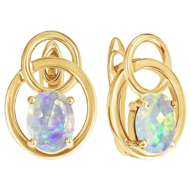 Серебряные серьги с натуральным опалом - коллекция Юнона. Серебряные серьги 925 пробы с покрытием желтое золото. Цвет покрытия соответствует швейцарскому цветовому стандарту NIHS -FF24ct и цвету чистого золото 999.99. На последней фотографии мы разместили сравнительную фотографию 3 цвета золотого покрытия. Помимо предания золотого цвета Вашему изделию, тонкий слой золота защищает от окисления. Для более стойкого эффекта золочения и долговечности покрытия мы дополнительно наносим подслой палладия (Pd). Средний вес изделия с камнями 4.13 гр. Месторождение: Опал (Эфиопия). Опал (Натуральный) овал 6*8 мм., средний вес: 0.51 карат. Все изделия собственного производства. Гарантия 12 месяцев.Арт. 8400. Опал – это благородный камень, известный ещё с древности. Ему приписывали разнообразные магические свойства. Окраска опала многовариантна, выделяют более ста типов. Он помогал справиться с порчей и сглазом, защищал от негативной энергетики, способствовал излечению мигреней. Как талисман для ребенка, становился защитником от дурных сил и заболеваний.