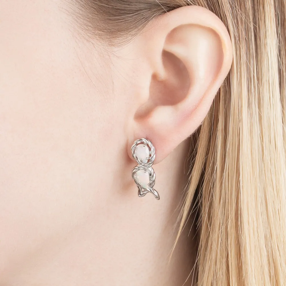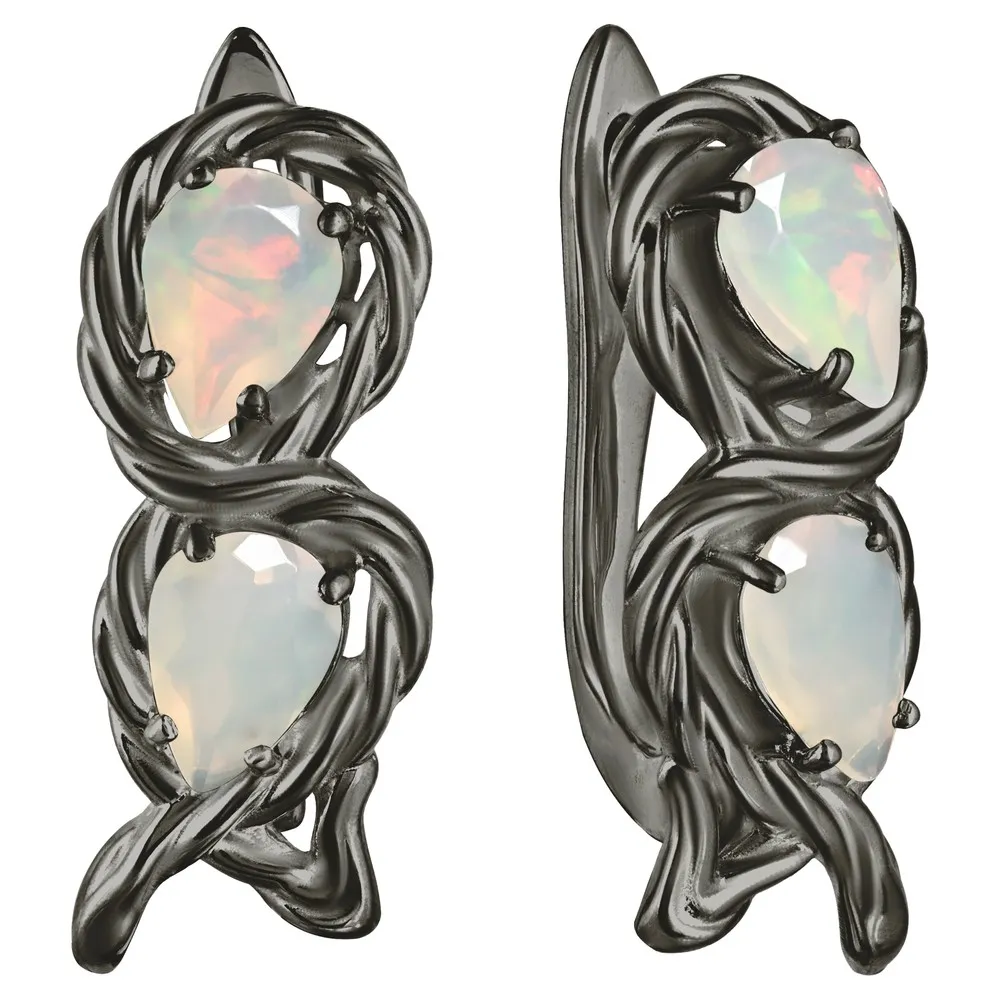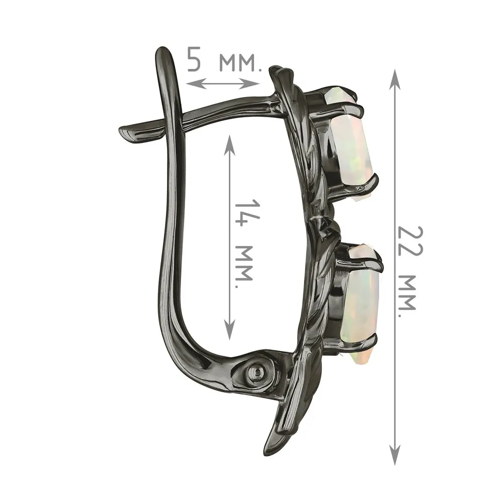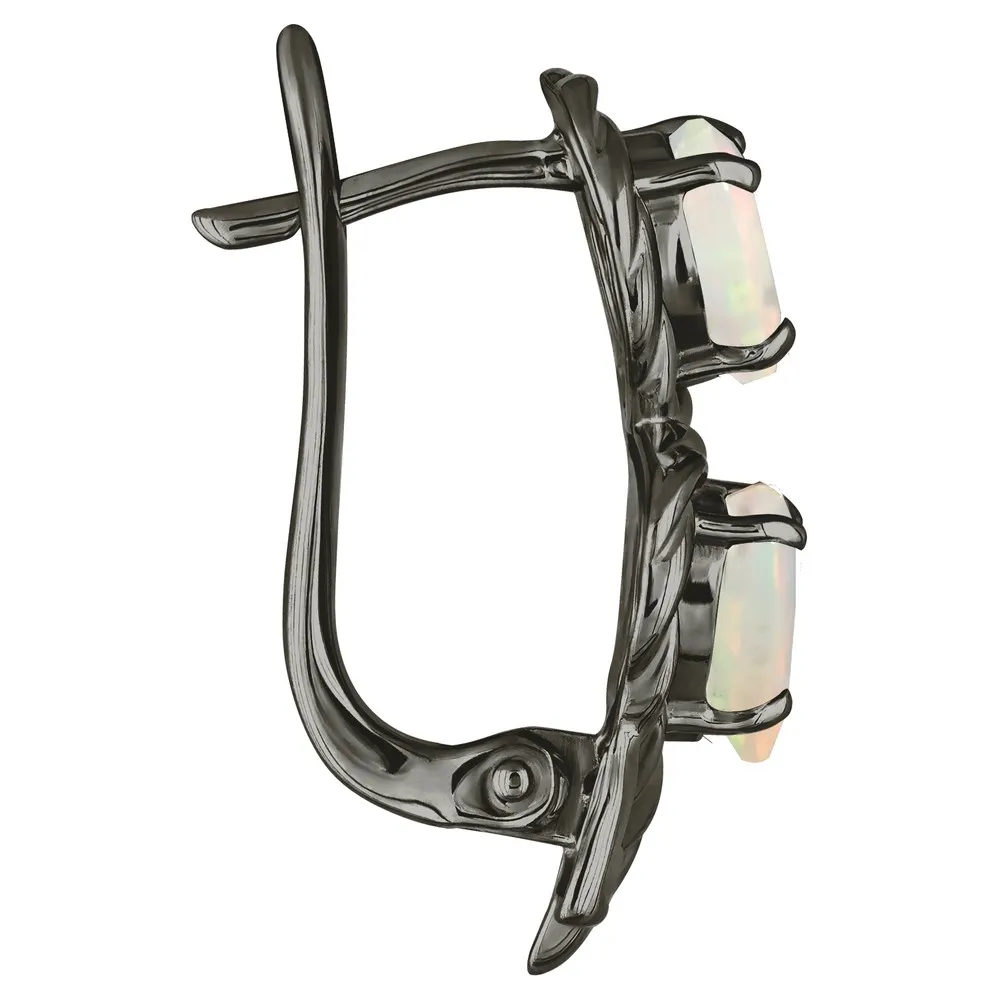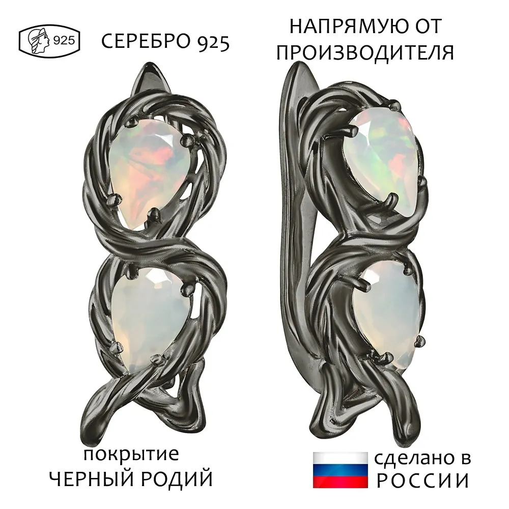 Серебряные серьги с натуральным опалом (Экстра) - коллекция Ривьера, покрытие Черный Родий.