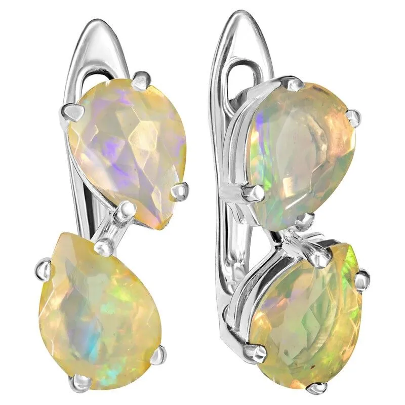 Серебряные серьги с натуральным опалом (1 класс) - коллекция Дуэт / покрытие Белый Родий.Средний вес украшения с камнями 2.93 гр.Месторождение(я): Опал (Эфиопия).Ювелирные вставки:Опал (Натуральный) груша 5*7 мм., средний вес: 0.38 карат.Все изделия собственного производства и имеют гарантию 12 месяцев. Арт. 8688WR . Опал – это благородный камень, известный ещё с древности. Ему приписывали разнообразные магические свойства. Окраска опала многовариантна, выделяют более ста типов. Он помогал справиться с порчей и сглазом, защищал от негативной энергетики, способствовал излечению мигреней. Как талисман для ребенка, становился защитником от дурных сил и заболеваний.