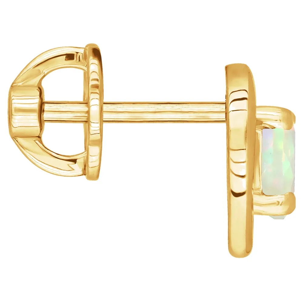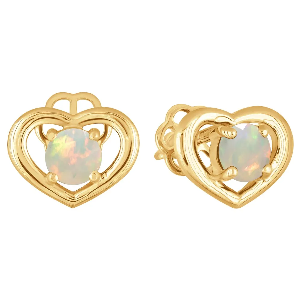 Серебряные серьги гвоздики (пусеты) с натуральным опалом (1 класс) - Сердце / покрытие Желтое Золото.