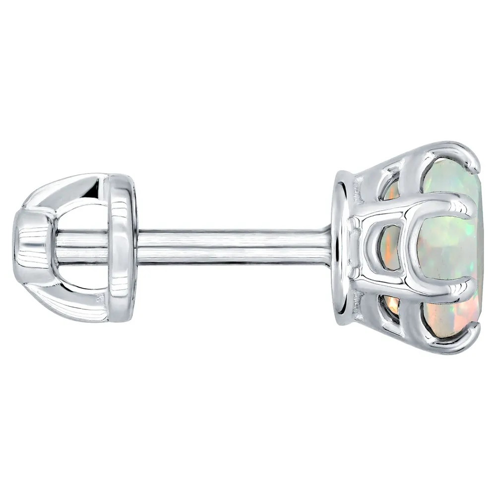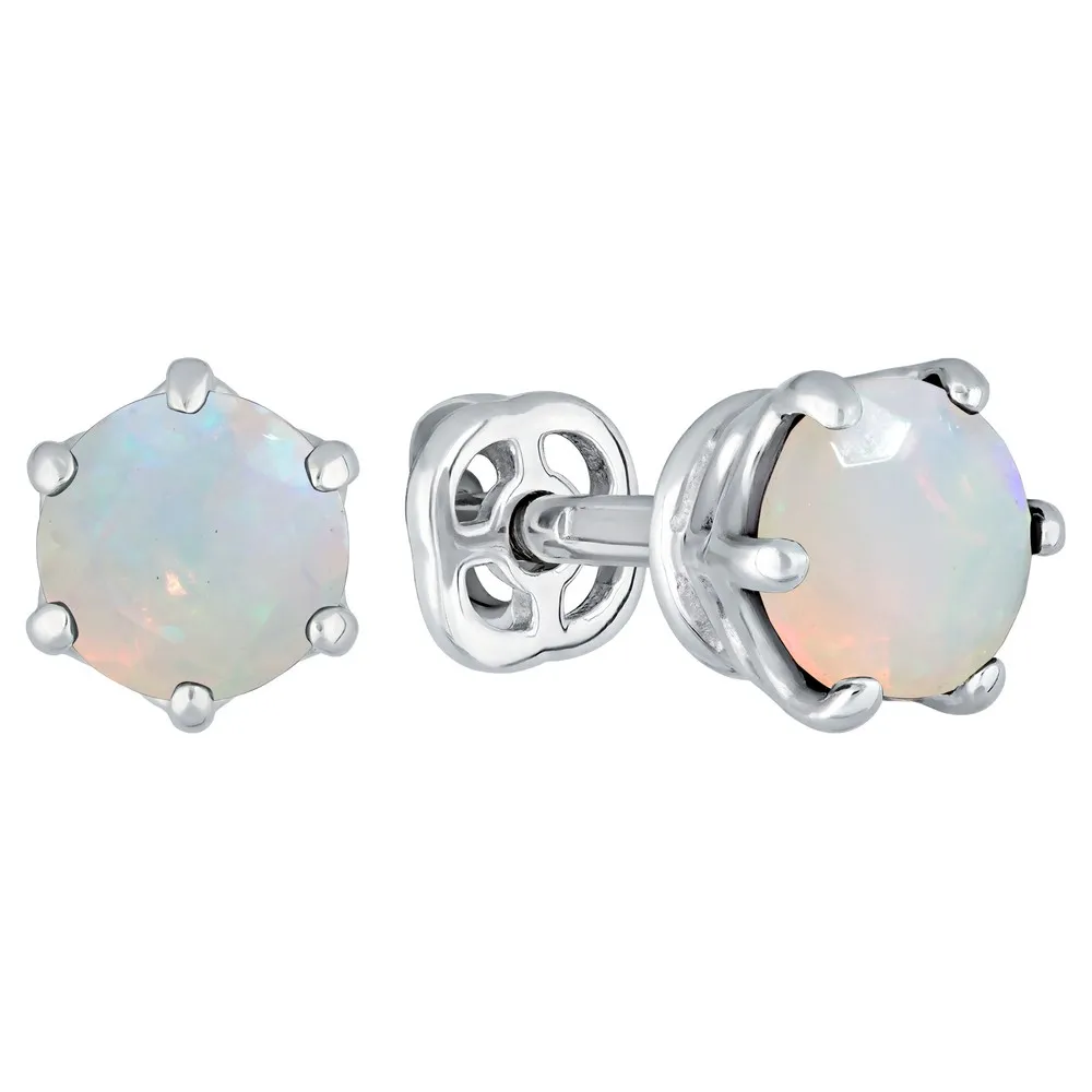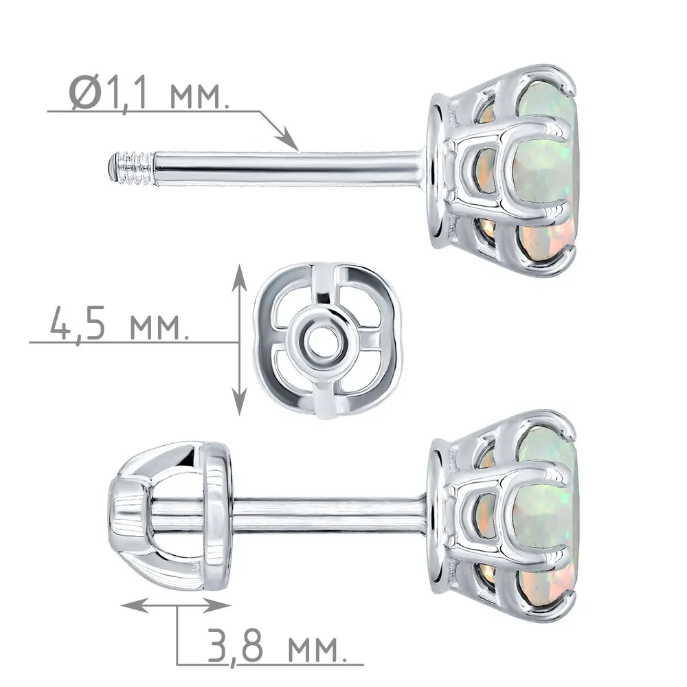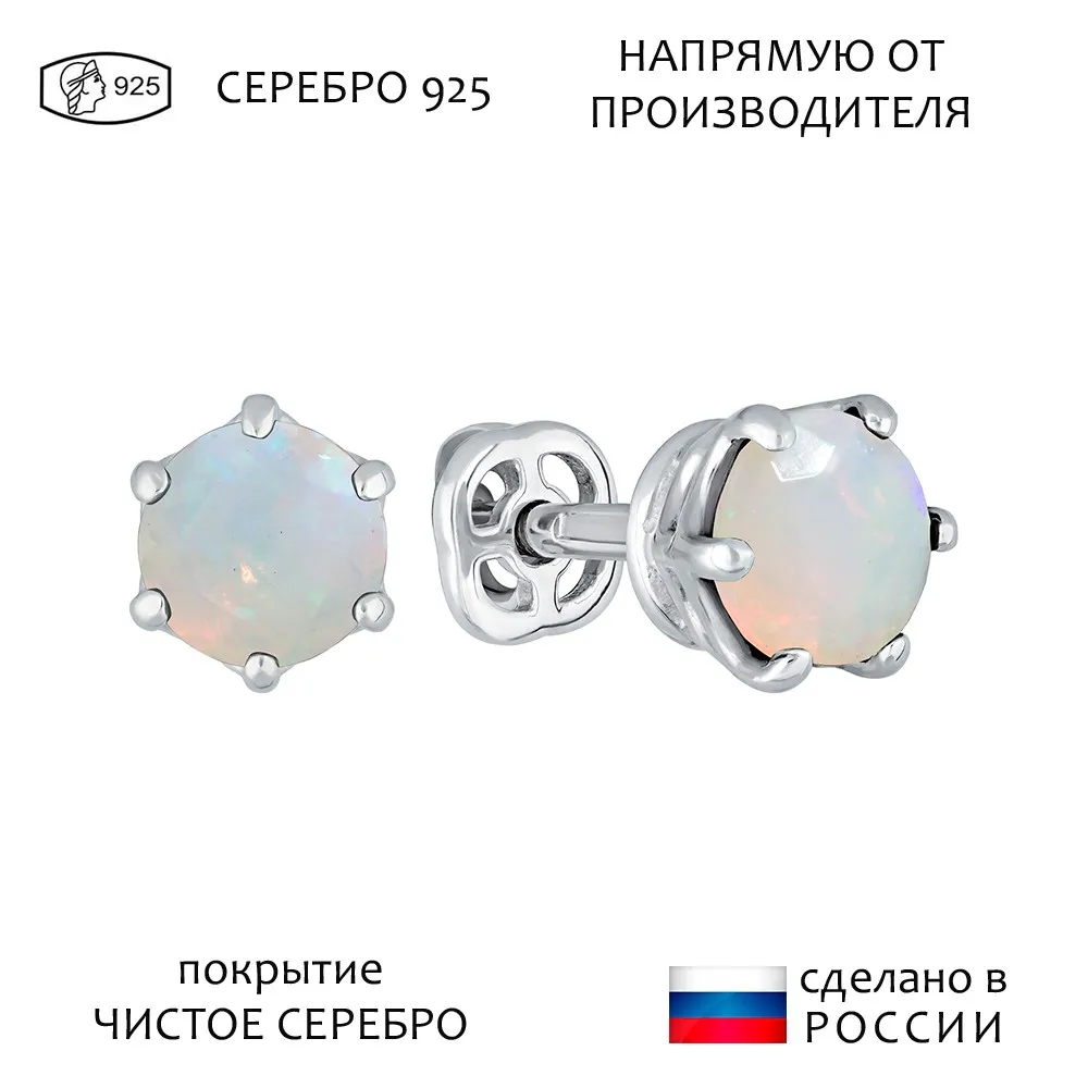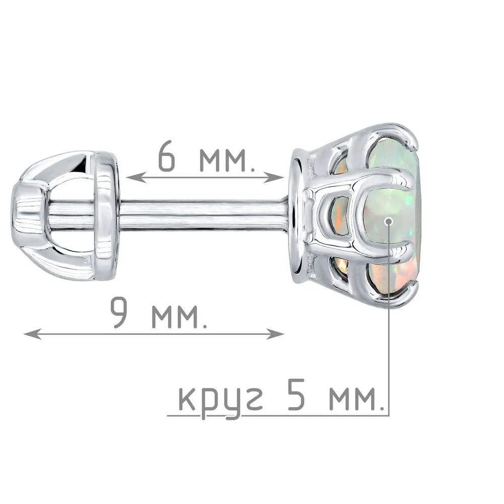 Серебряные серьги гвоздики (пусеты) с натуральным опалом (1 класс) 5 мм. / Чистое Серебро.